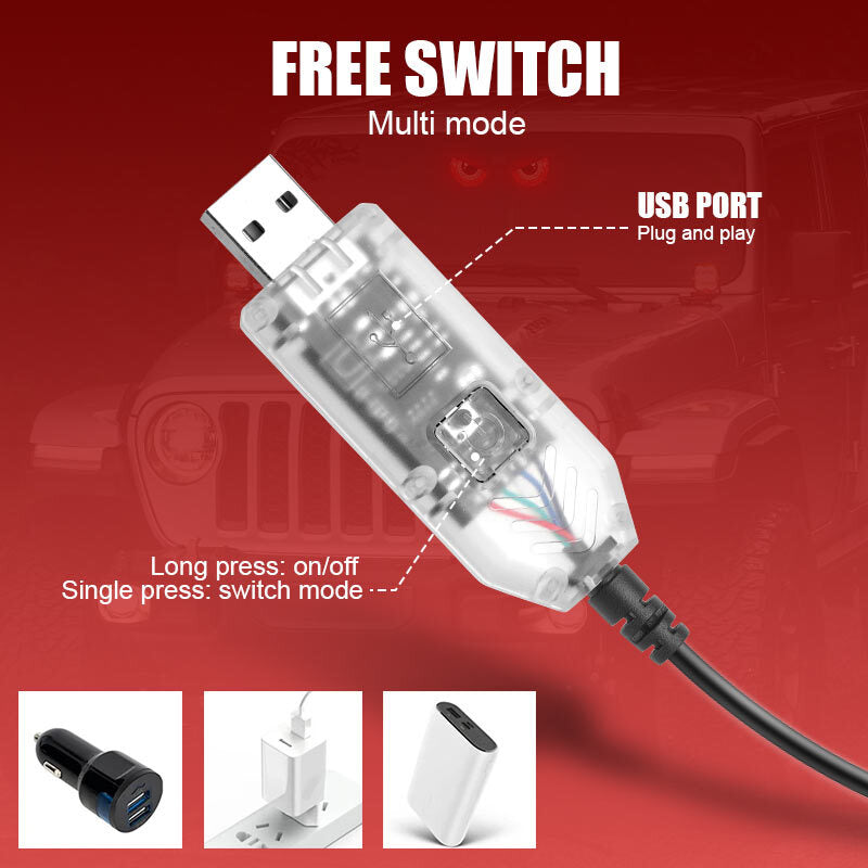 Short press to switch modes, 11 modes selectable: 1 Constant+10 Flashing