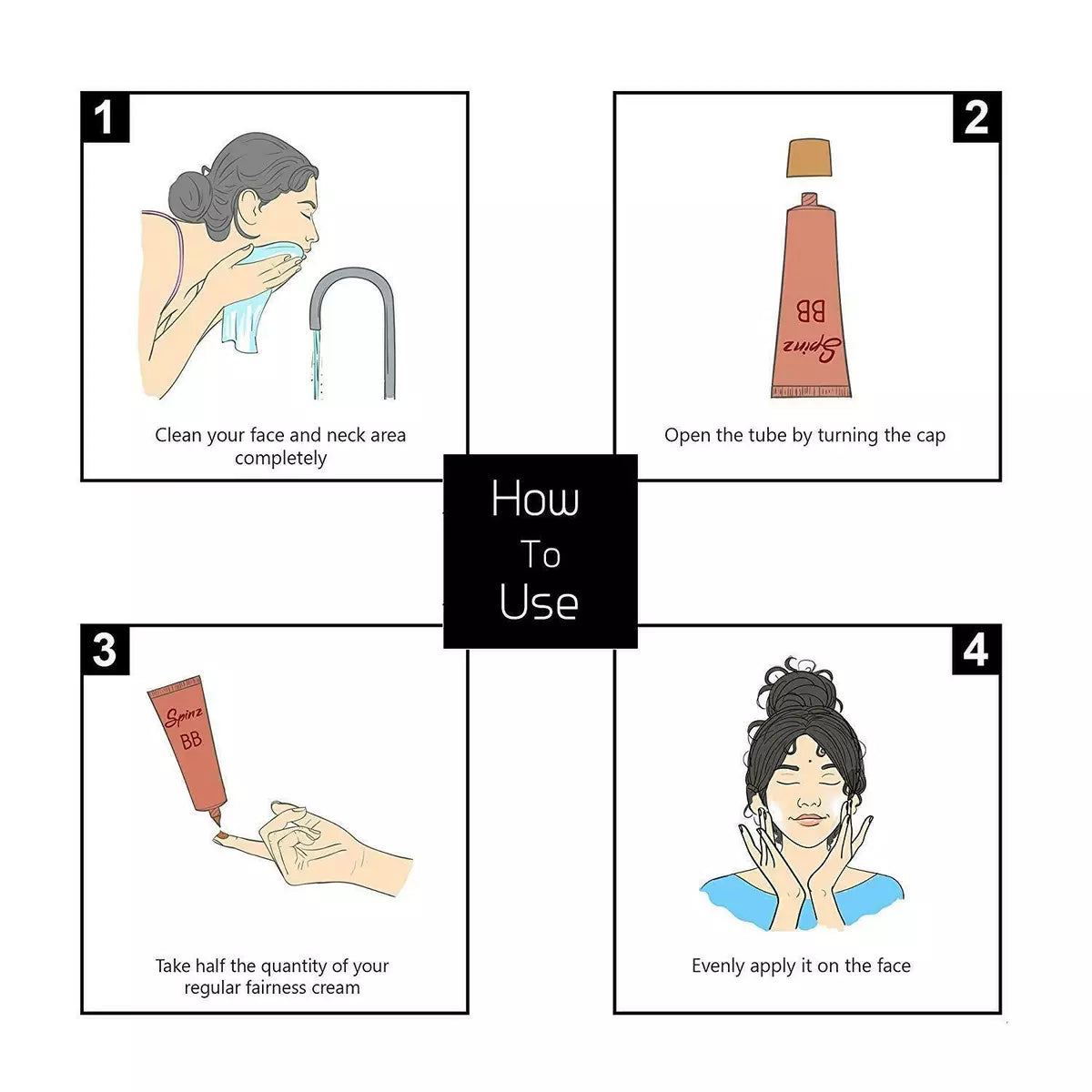 Introducing the next generation of fairness creams! Presenting the all New Spinz BB Fairness Cream - The cream is so soft and silky that it easily blends with your skin. It instantly covers all your dark spots and leaves you with an oil free natural looking glow. It’s so powerful that 89/100 women loved it and have said that it’s better than their current fairness creams. Now get perfect looking skin everyday!
