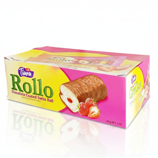 View full details🍓 Tiara Rollo Chocolate Coated Strawberry Swiss RollTreat yourself to a delightful indulgence with Tiara Rollo Strawberry Swiss Roll — a soft, crea...