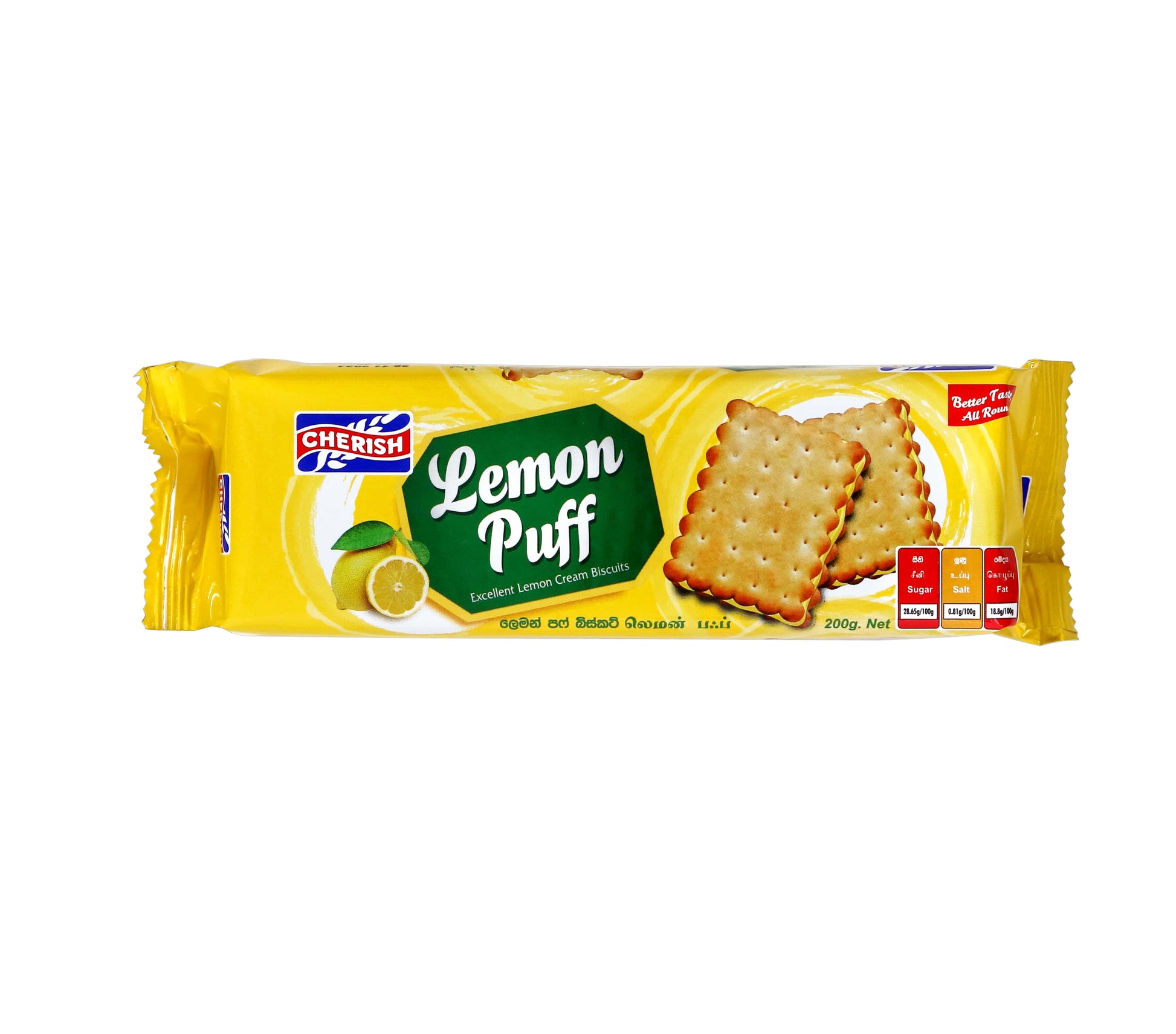 Ingredients: Wheat Flour, Sugar, Vegetable fat (palm oil), Dextrose Monohydrate, Corn Starch, Milk Powder, Leavening Agents (Sodium Bicarbonate INS 500ii, Ammonium Bicarbonate INS 503ii), Salt, Emulsifier (Soya Lecithin INS 322), Artificial Lemon Flavour, Permitted Colour (Tartrazine Yellow INS 102)