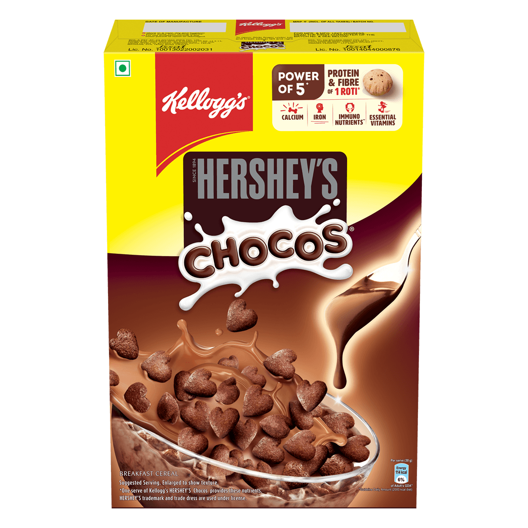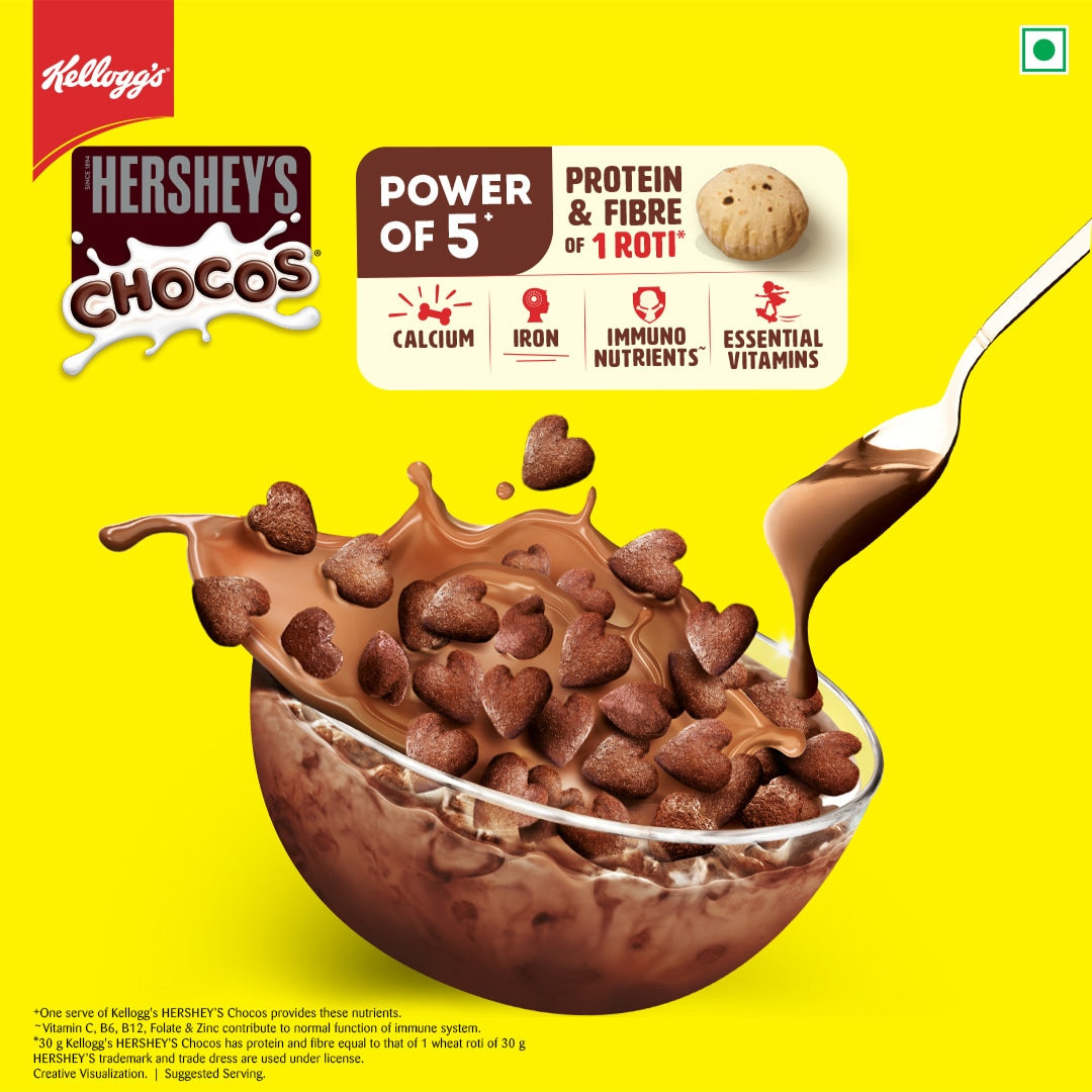 Kellogg's Chocos & HERSHEY'S, your two all-time favourites have come together to double your joy! Pour milk into these yummilicious heart-shaped bit of chocolatey crunchy delight, and enjoy. Mornings have never been so much fun!