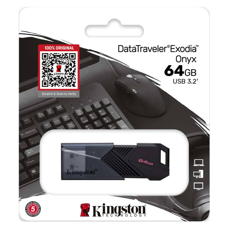 Kingston DataTraveler® Exodia™ Onyx is a USB 3.2 Gen 1 compliant1 flash drive that delivers quick transfers for simple and easy storage. Designed with a sleek matt black casing, the DT Exodia Onyx is the perfect affordable companion for stylish storage. The drive is available in capacities of up to 256GB2.