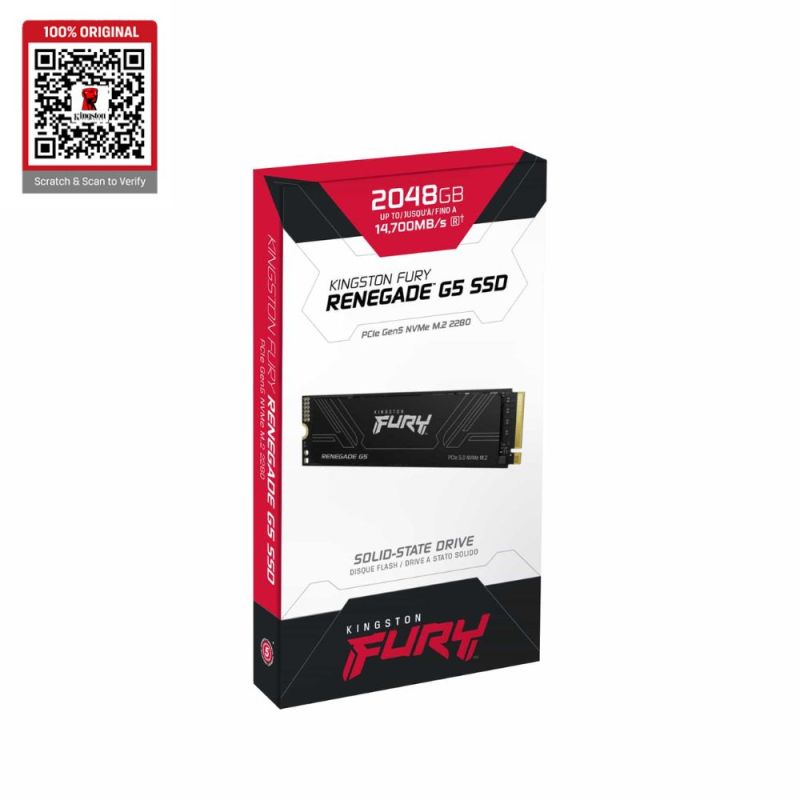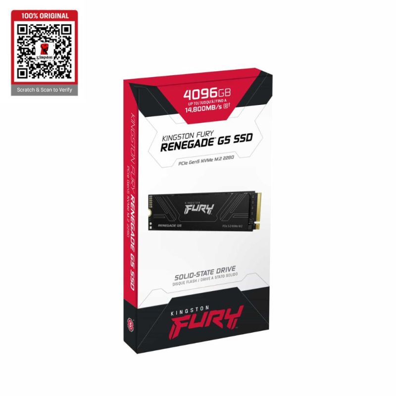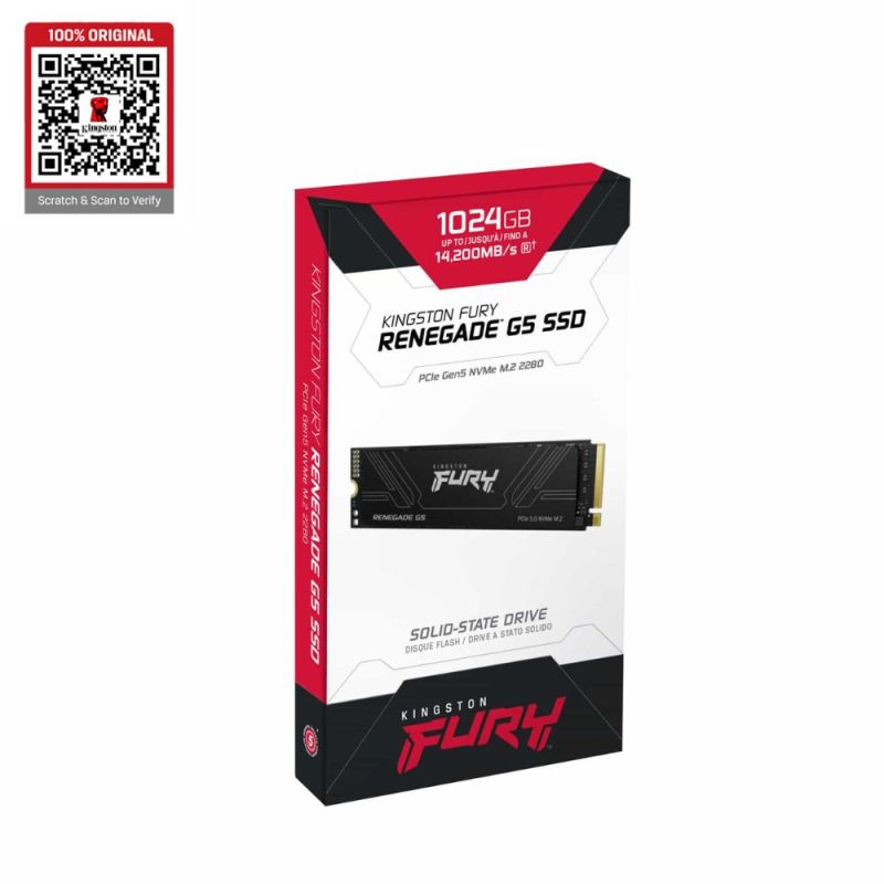 Unleash the full potential of your system with Kingston FURY Renegade G5 PCIe 5.0 NVMe M.2 SSD. By leveraging the latest PCIe Gen5 x4 controller and 3D TLC NAND, Kingston FURY Renegade G5 SSD offers extreme speeds of up to 14,800/14,000MB/s read/write1.