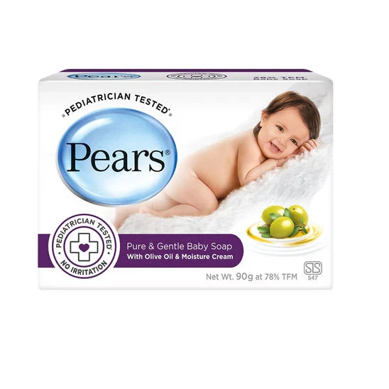 Pears Pure Gentle soap Enriched with moisture cream Pure Olive oil gently cleanses your babys skin without drying, keeping it irresistibly babysoft