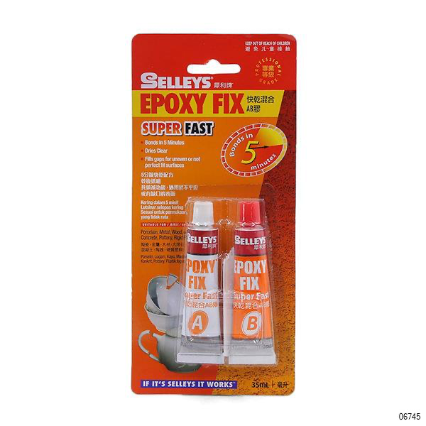 Epoxy Fix Super Fast is a quick-setting, two-part epoxy resin adhesive. Super Fast provides strong adhesive suitable for bonding most materials in common use. Super Fast sets in approximately 5 minutes and after this time bond strength is usually sufficient for handling. No undue strain should be applied to the bond for 30 minutes. Very high bond strength is attained after 16 hours.
