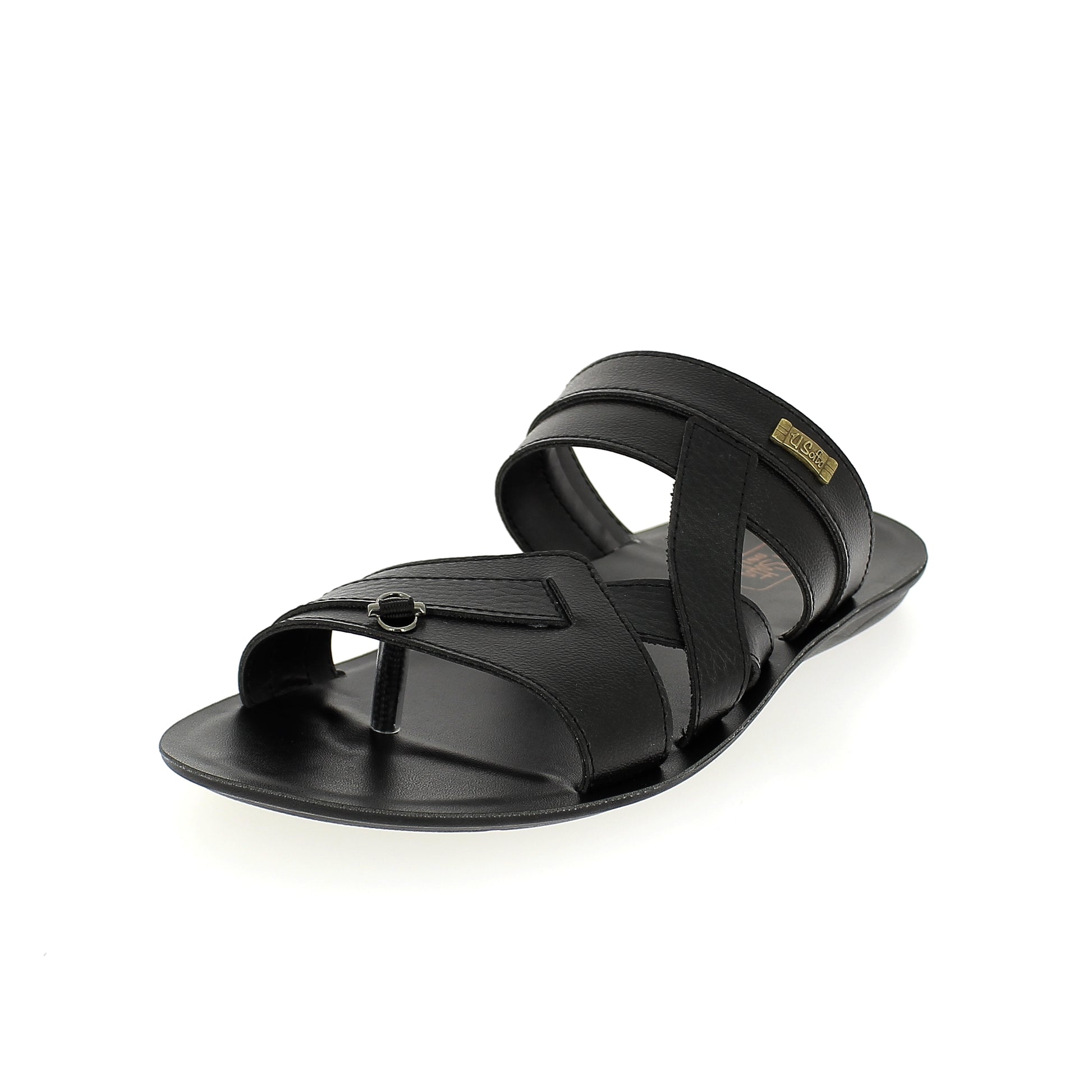 U Softo Men Toe Rings Slippers Black