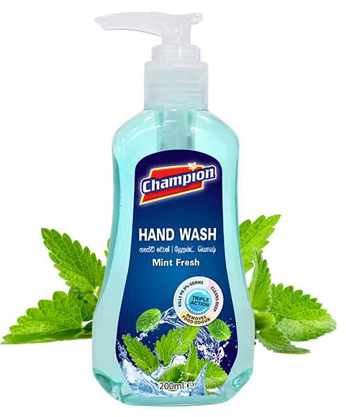 7 இயற்கை சாறுகளால் செறிவூட்டப்பட்ட சாம்பியன் ஹேண்ட் வாஷ், கிருமிகளை திறம்படக் கொன்று, உணவு நாற்றங்களை ஆழமாக சுத்தம் செய்து, நீக்கி, புத்துணர்ச்சியூட்டும், ஆரோக்கியமான கைகளுக்கு புதினா நறுமணத்துடன் உதவுகிறது. வலுவான மாய்ஸ்சரைசர்கள் கைகளை மென்மையாகவும், பராமரிக்கவும் உதவுகின்றன.