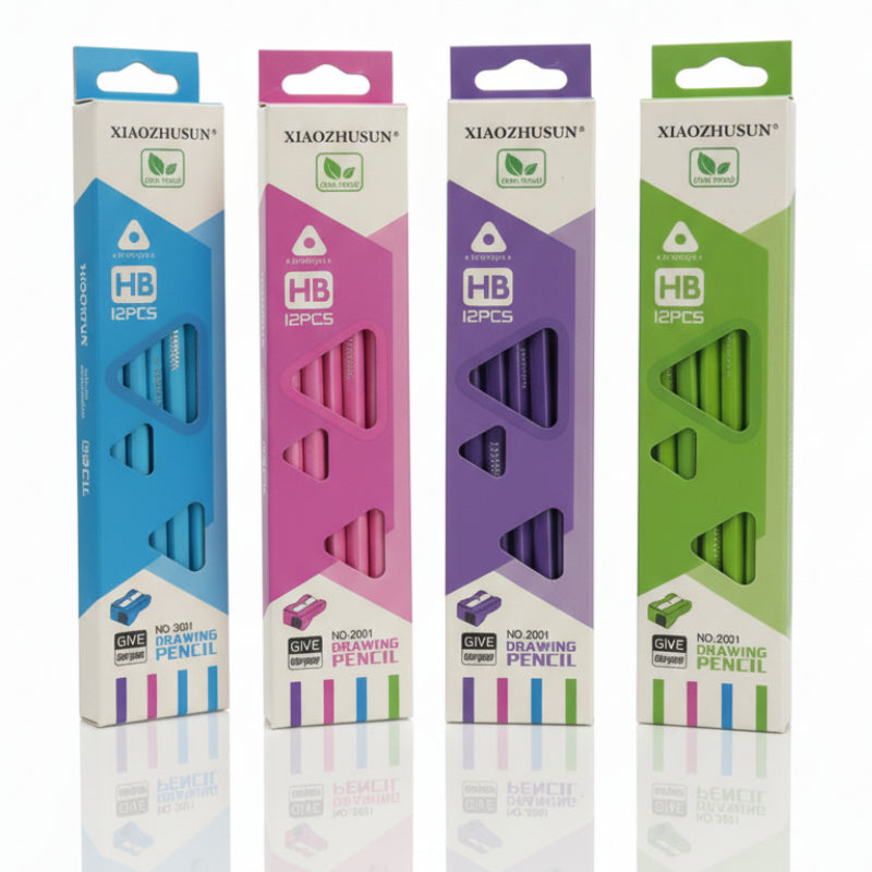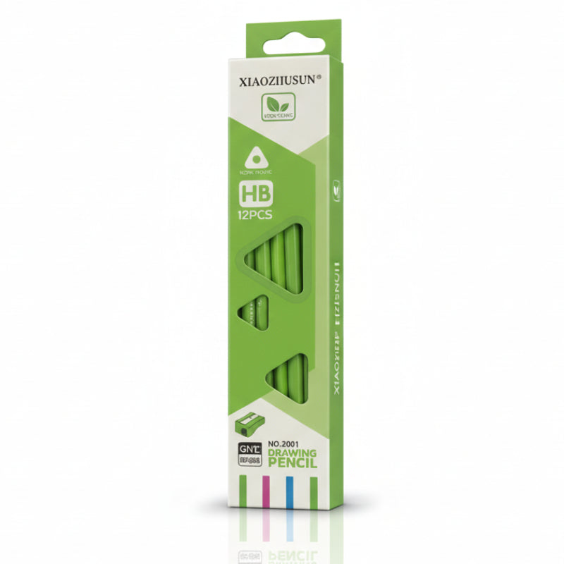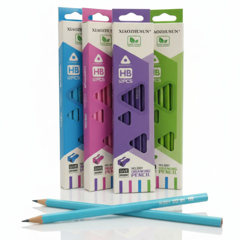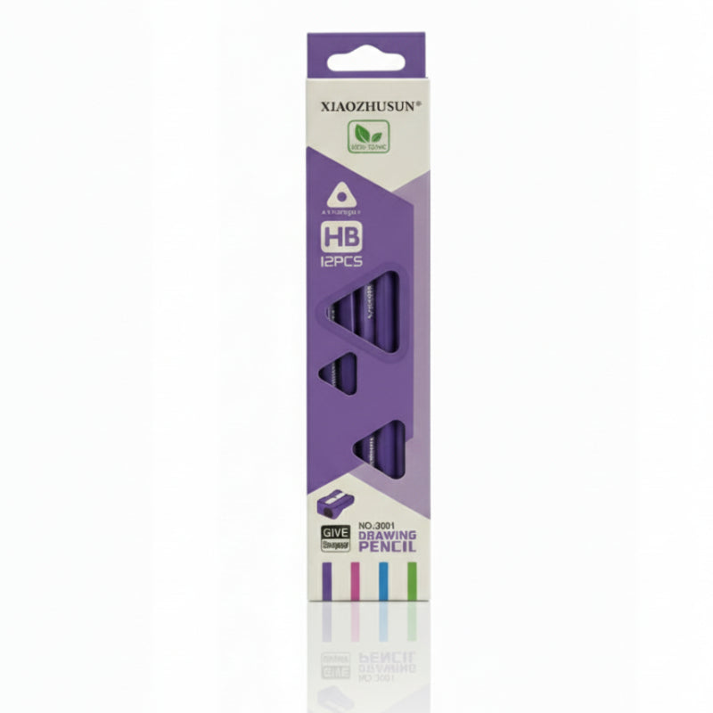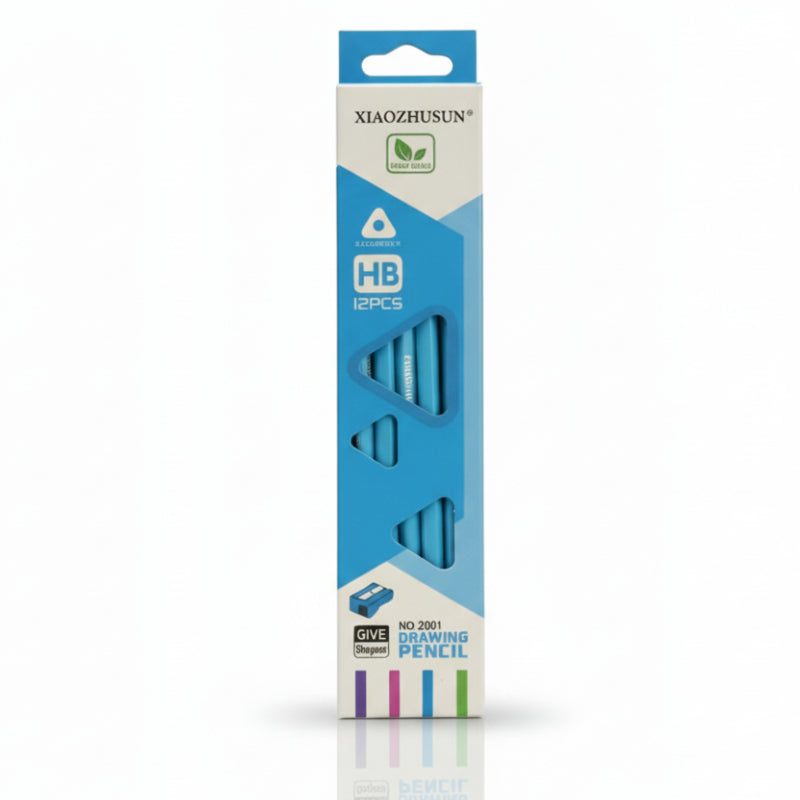 ✏️✨ HB முக்கோண வரைதல் பென்சில் - இலவச கூர்மையாக்கும் கருவி - Mod.No-2001 (1 பெட்டி - ஒவ்வொன்றும் 12 பென்சில்கள்)