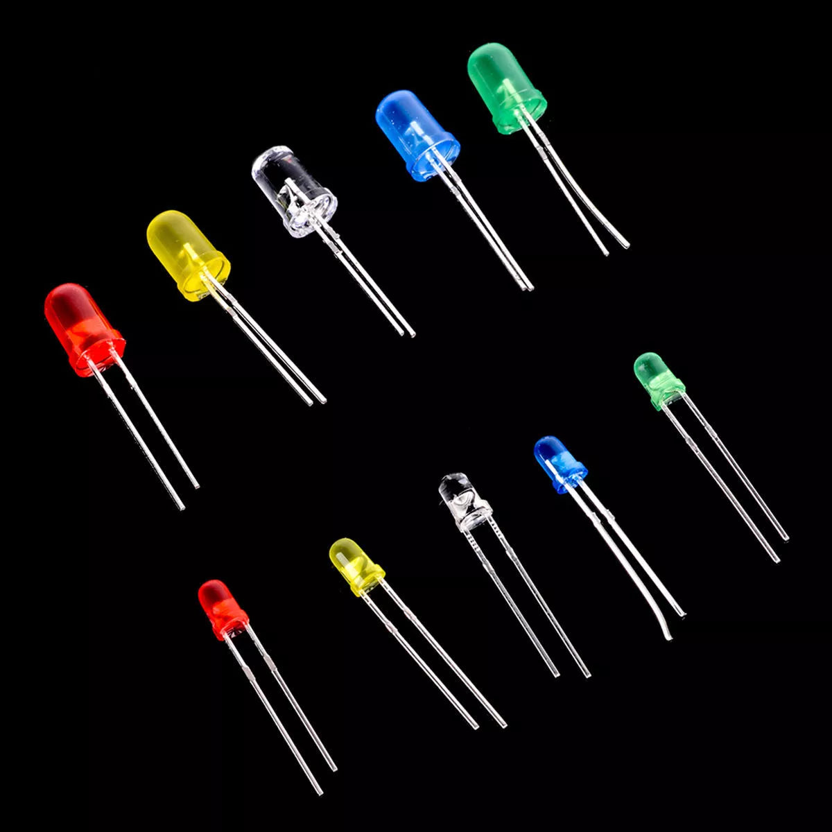 LED 3mm 5mm ஒளி-உமிழும் டையோட்கள் LED மாதிரி வெள்ளை நீல சிவப்பு மஞ்சள் பச்சை செய்யும்